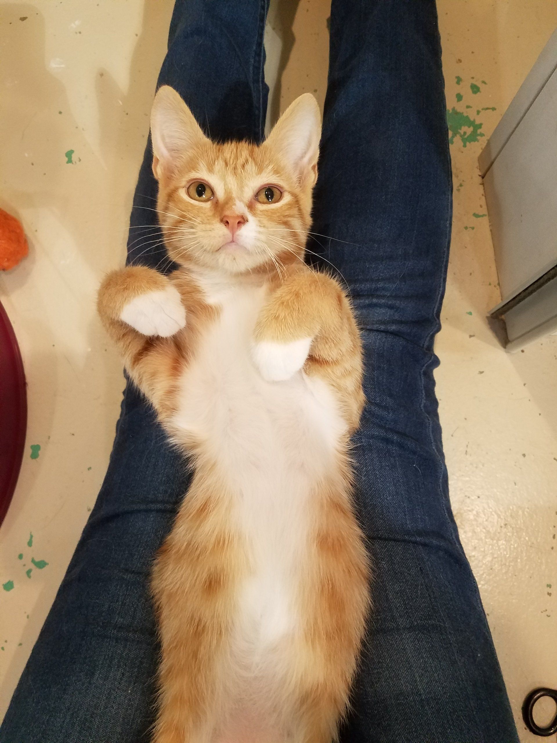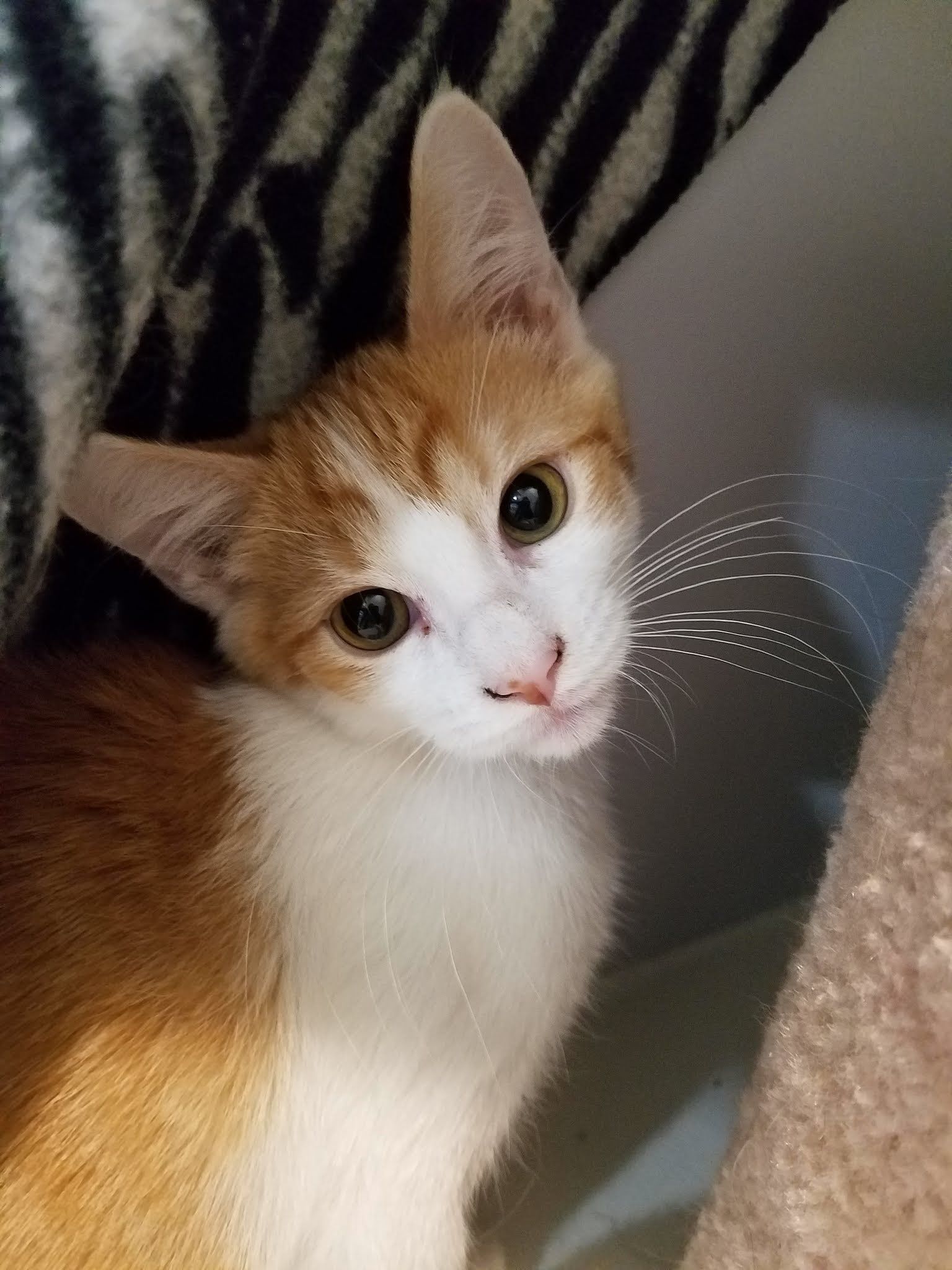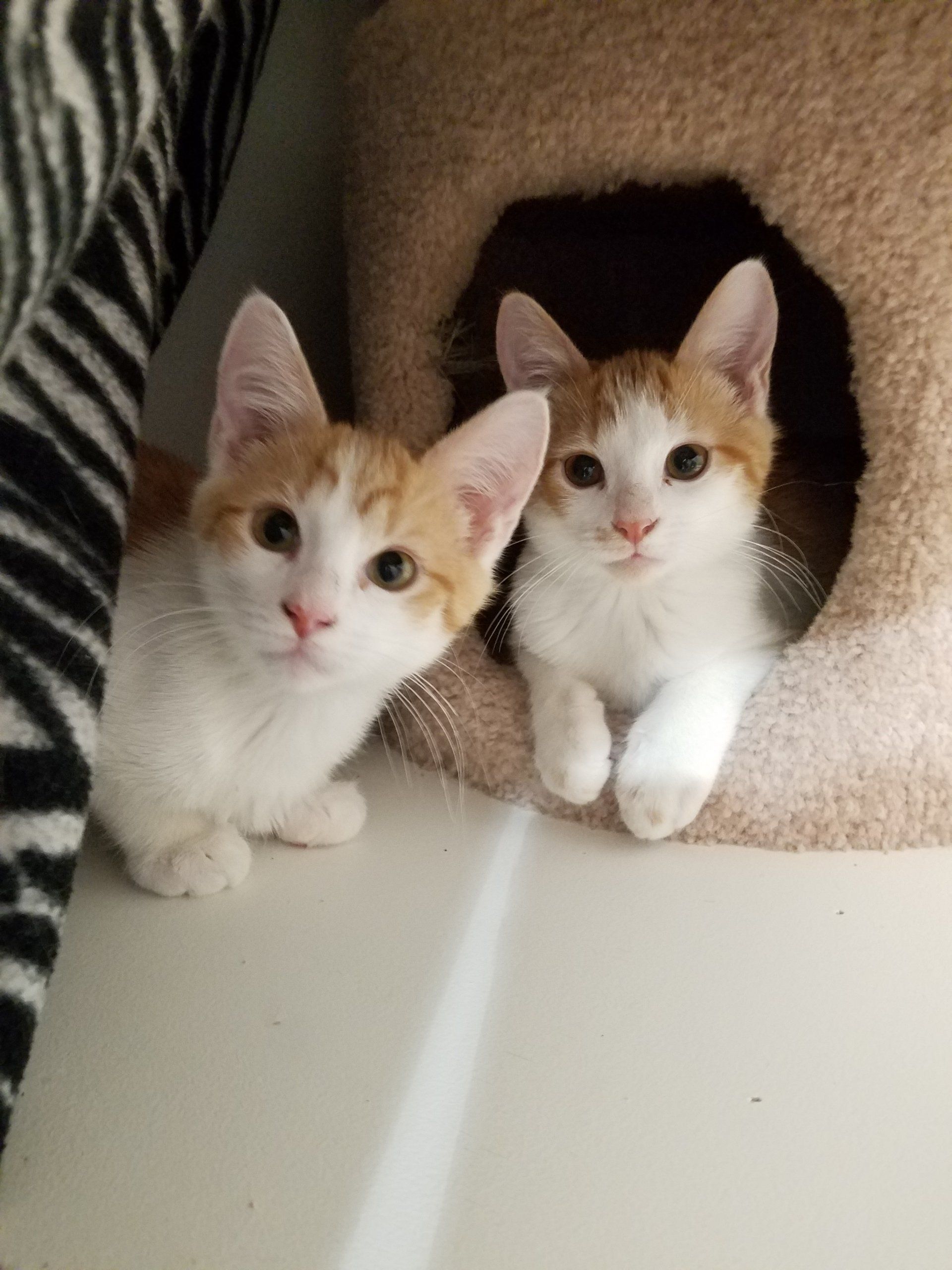 Heli (orange/white male), LOVES to climb and is very affectionate.