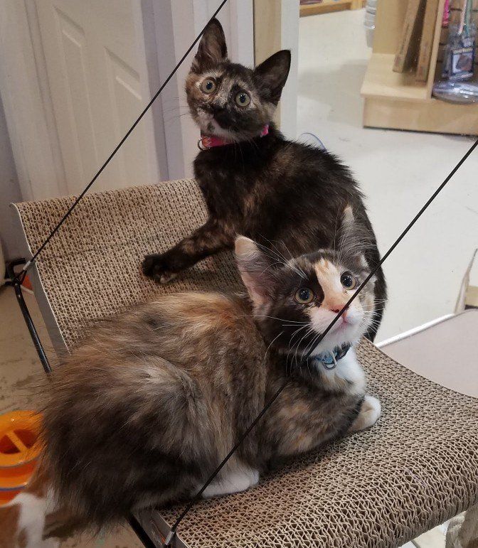 Sisters born April 12. Must be adopted together. Nova is shorthair, Xena is longhair. Very affectionate girls!